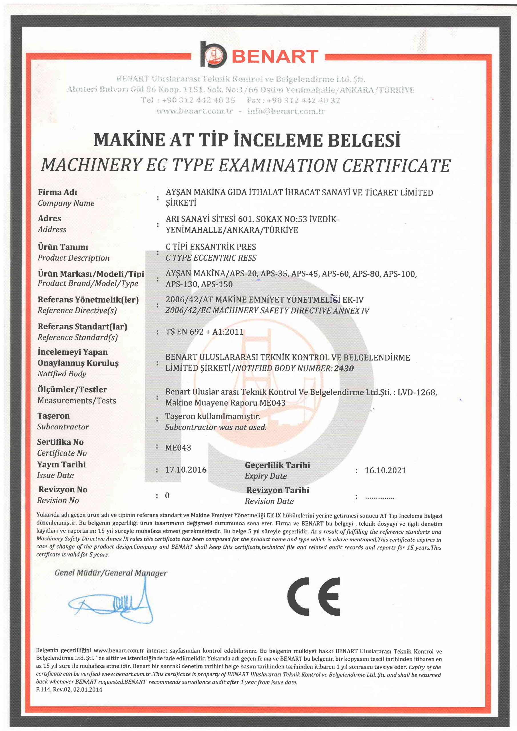 AYSAN MAKİNA, together with its employees, aims to provide products and services in universal quality and standards by providing the demands of its customers. In this way, it aims to be a symbol of reliability, continuity and respectability for its country, customers, dealers and sub-industry.