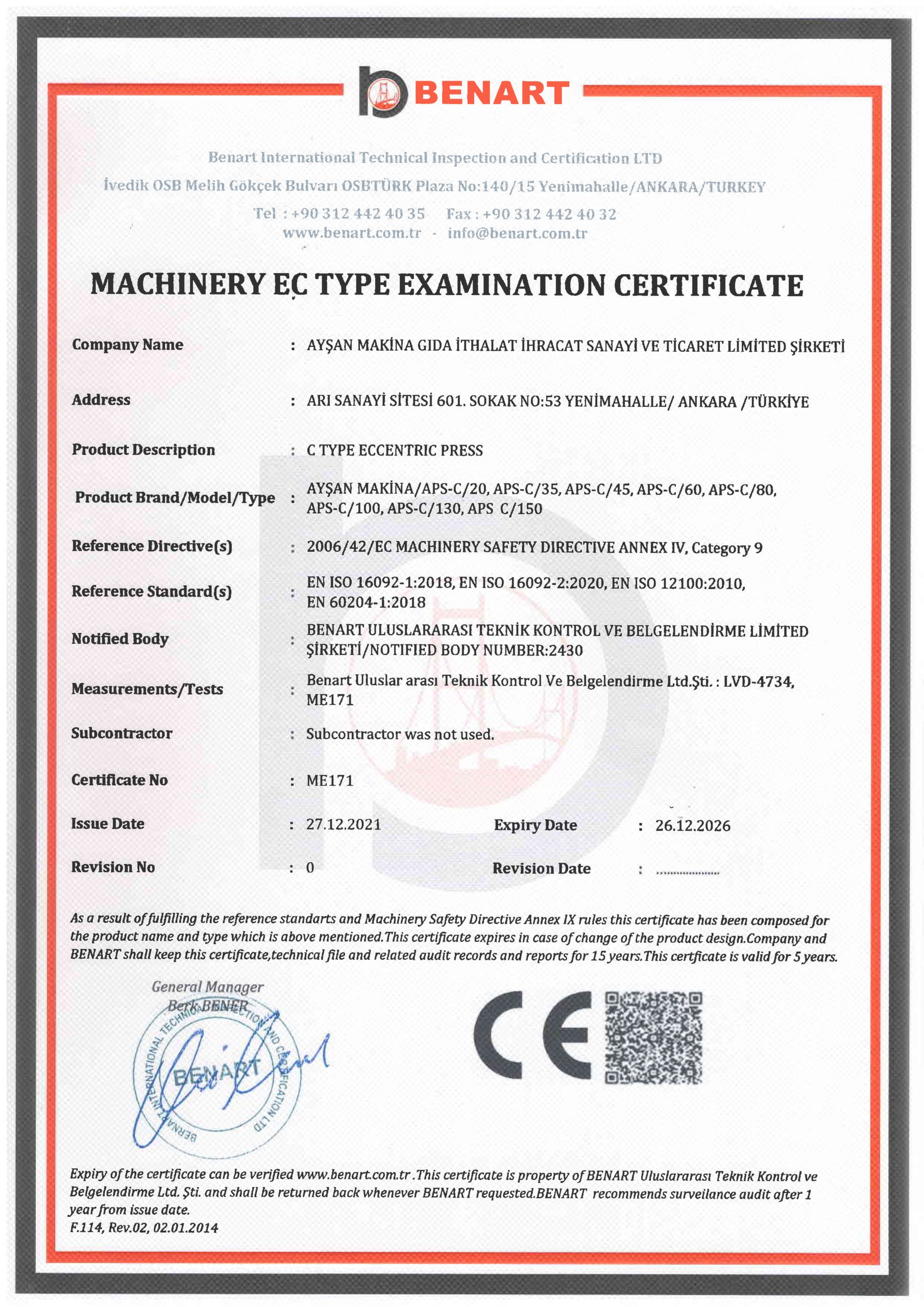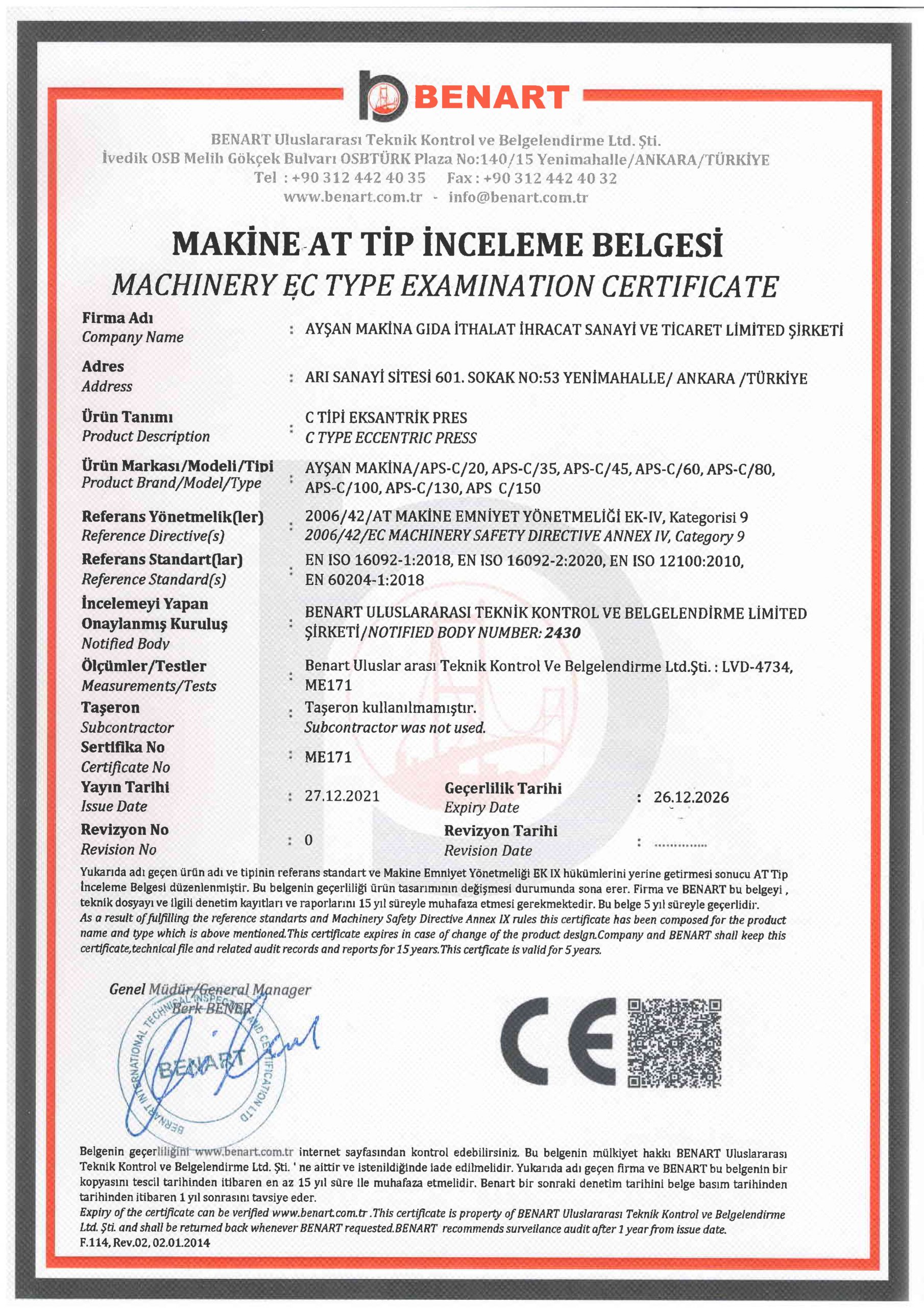 AYŞAN MAKİNA aims to provide products and services with universal quality and standards by providing customers with the demands of healthy development. It aims to be a symbol of reliability, continuity and respect for its country, its customers, its franchisees and subsidiary industries.